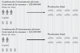 La productividad concierne a la capacidad para elaborar la producción de manera eficiente, puesto que trata en específico de la relación entre la producción final y los insumos que se utilizan para obtenerla. Por lo general se utilizan diferentes combinaciones o mezclas de insumos para elaborar un nivel de producción determinado. La eficiencia productiva total es el punto en el cual se satisfacen dos condiciones: (1) para cualquier mezcla de insumos que habrá de dar lugar a una producción determinada, para elaborar el producto se utiliza sólo la cantidad necesaria de cualquier insumo y (2) dadas las mezclas que satisfacen la primera condición, se elige la menos costosa. La primera condición es impulsada por relaciones técnicas y, por lo tanto, recibe el nombre de eficiencia técnica. Para visualizar las actividades como insumos, la primera condición requiere la eliminación de todas las actividades que no agregan valor y que las actividades que agregan valor se ejecuten con las cantidades mínimas necesarias para elaborar la producción especificada. La segunda condición es impulsada por las relaciones relativas de los precios de los insumos y, por lo tanto, recibe el nombre de eficiencia distributiva. Los precios de los insumos determinan las proporciones relativas de cada insumo que deberían utilizarse. Las desviaciones respecto de estas proporciones óptimas crean una ineficiencia en la distributiva.