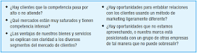 Un segundo componente del análisis de mercado de la comunicación es la búsqueda de las oportunidades. Esto incluye examinar todos los datos e información de mercado disponible para estar al día y detectar las nuevas oportunidades de comunicación de marketing que van surgiendo. Algunas de las preguntas que plantea el equipo de marketing se presentan en la figura 2.