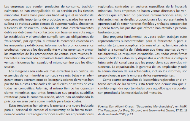 Recuadro 1. La tendencia al outsourcing de las ventas misioneras en las tiendas minoristas. |