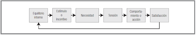 El ciclo motivacional empieza con el surgimiento de una necesidad. La necesidad es una fuerza dinámica y persistente que origina el comportamiento. Cada vez que surge una necesidad, ésta rompe el estado de equilibrio del organismo, produciendo un estado de tensión, insatisfacción, incomodidad y desequilibrio. Ese estado lleva al individuo a un comportamiento o acción, capaz de liberar la tensión o de liberarlo de la incomodidad y del desequilibrio. Si el comportamiento es eficaz, el individuo encontrará la satisfacción a su necesidad y, por lo tanto, la descarga de la tensión producida por ella. Satisfecha la necesidad, el organismo vuelve a su estado de equilibrio anterior, a su forma de adaptación al ambiente. El ciclo motivacional se esquematiza en la figura siguiente.